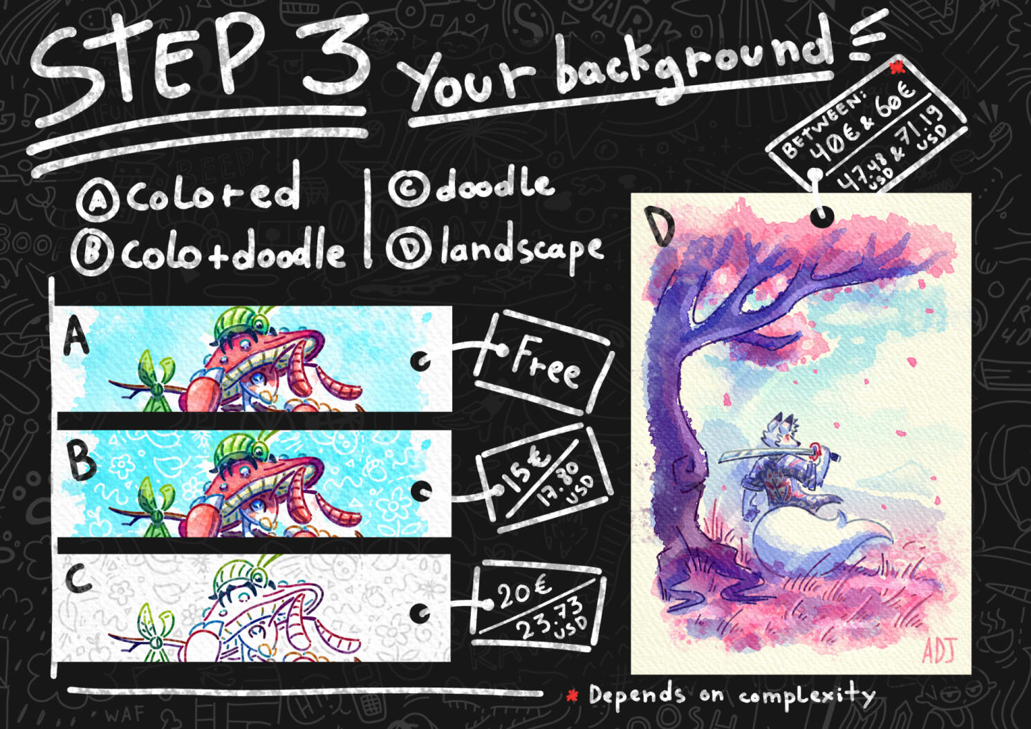 If you want an artwork, You can follow these slides to calculate what you'll have to pay.Don't forget to read my TOS before placing an order